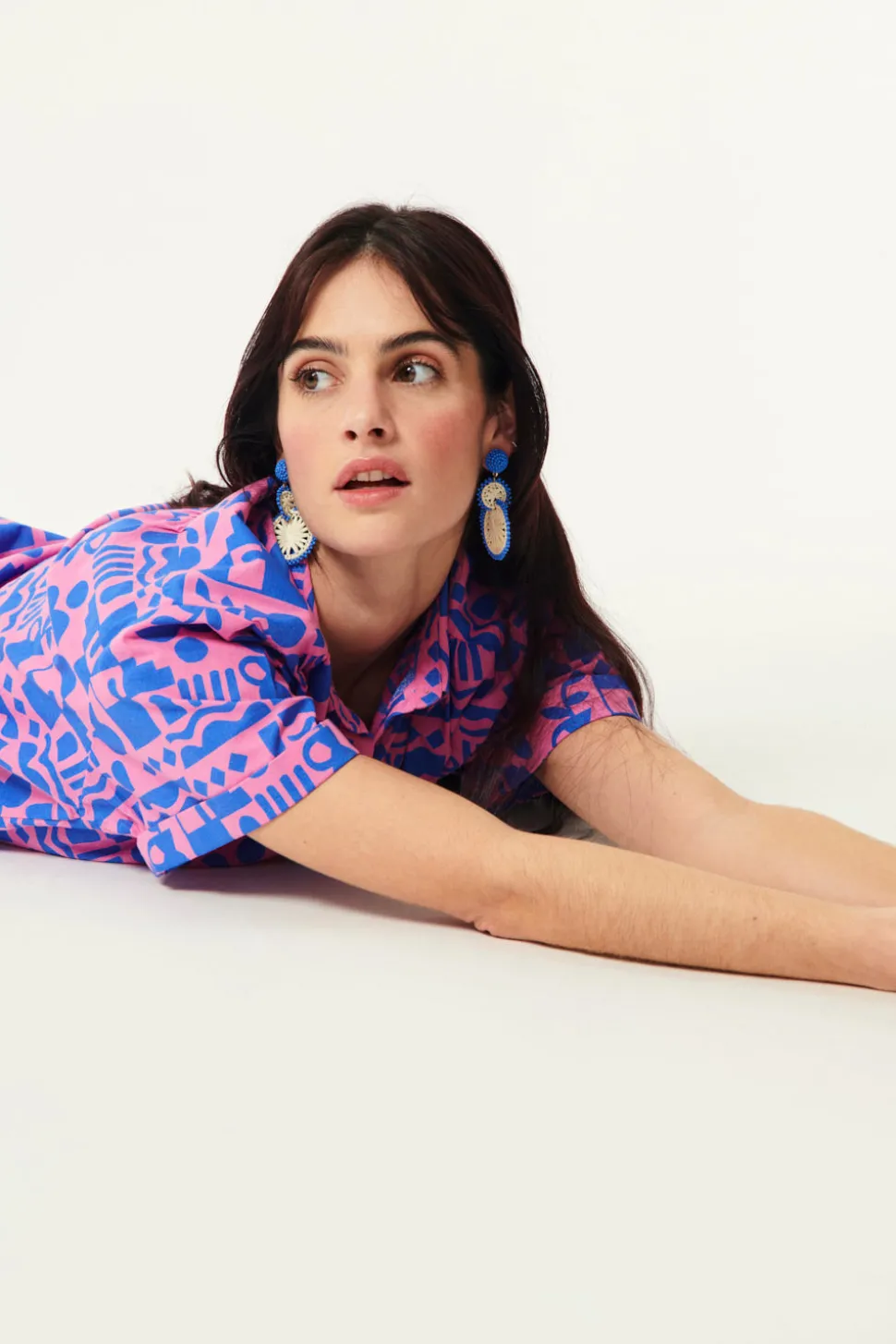 Boucles D’Oreilles Pepitcho Ecru/Bleu
