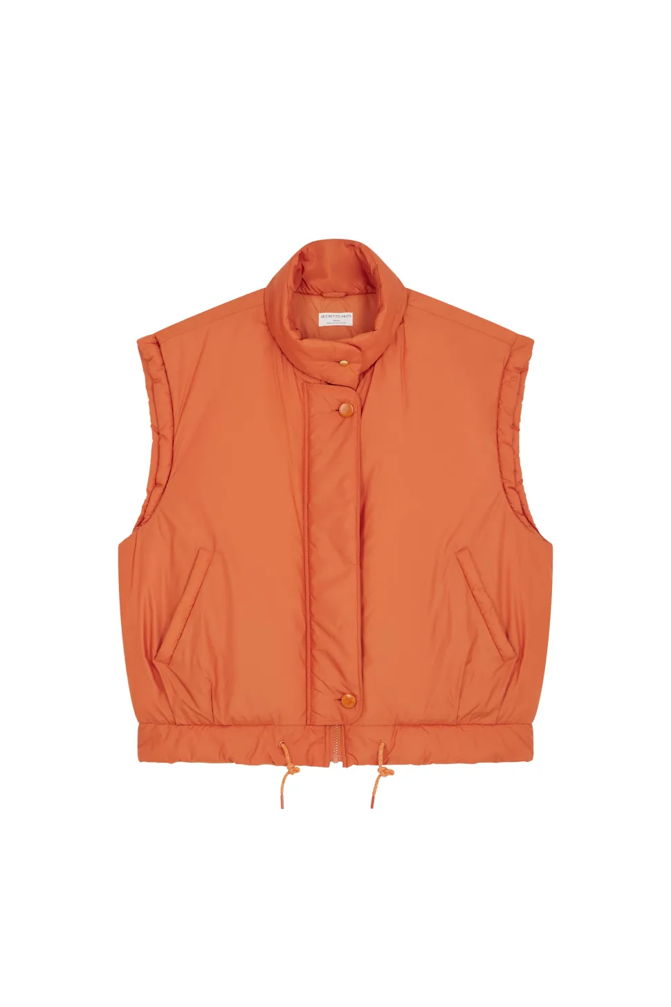 Plus urbaine et toujours aussi confortable, la doudoune sans manches Neletta prend la forme d’une veste de sport rembourrée pour un look athleisure mêlant les styles streetwear et gymwear à la perfection. Esprit 80’s avec ses lignes graphiques, ses épaules tombantes et sa taille resserrable structurent la silhouette. • Veste sans manches au rembourrage léger • Coupe droite resserrable à la taille • Col montant à bouton ton sur ton • Épaules tombantes • Ouverture par patte zippée • Coloris Lave : un orange vif • Modèle dessiné à Paris par notre styliste • Longueur : 65,5 cm pour une taille 1 • Iolanta mesure 1m71 et porte la taille 1 • Conseil look : portez-la sur un pull avec un jean et une casquette pour un look contemporain • Conseil taille : Ce modèle a été imaginé pour un porté oversize. Nous vous recommandons de prendre votre taille habituelle pour avoir le même porté que notre mannequin, si vous souhaitez un look plus ajusté, prenez la taille inférieure.