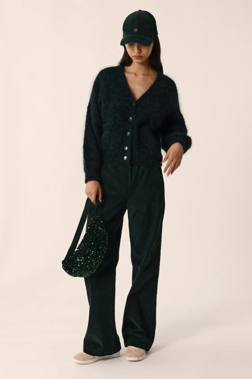 Avec son volume généreux et son encolure V profonde, le gilet Alouise sera de toutes les looks. Moelleux et cosy grâce à son kid mohair délicat, poches plaquées et boutonnage finalisent ce modèle parfait pour réchauffer vos tenues d’hiver.• Gilet boutonné volume large• Manches longues• Emmanchures décalées• Encolure V profonde• Poches plaquées• Finitions en bord-côte• Gilet en maille réalisé en fil italien du groupe « Moelleux » 62% Kid Mohair et 20% laine mérinos certifiée sans Mulesing. Fil exclusif et emblématique de la marque depuis 10 ans, il est gonflant, chaud, doux et duveteux.• Coloris Épicéa : un vert foncé• Modèle dessiné à Paris par notre styliste• Longueur : 56 cm pour une taille 1• Emilie mesure 1m77 et porte une taille 1• Conseil style : portez-le sur une robe longue imprimée ou avec un jean et des baskets pour une silhouette plus casual