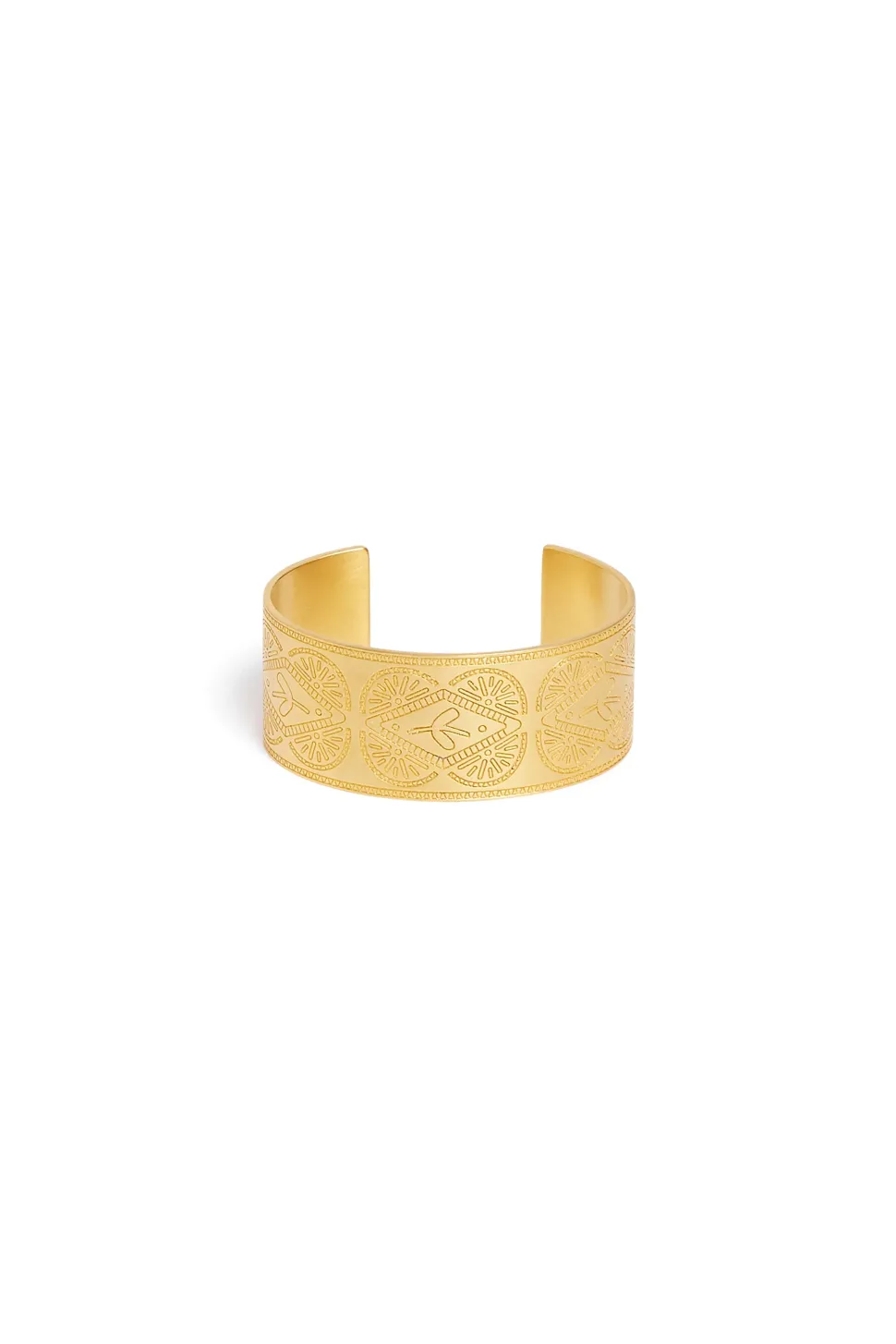 Ethnique chic et graphique, le bracelet Melda prend la forme d’un jonc plat pour l’automne. Imaginé comme une manchette gravée de motifs exclusifs, à porter seul ou en accumulation avec des bracelets en perles ou dorés, il rehaussera vos looks. • Jonc plat façon manchette en laiton doré à l’or fin • Gravure exclusive • Finition brossée • Ce bracelet s’enfile et existe en taille unique • Livré avec un pochon de rangement • Exclusivité DPH x Feeka